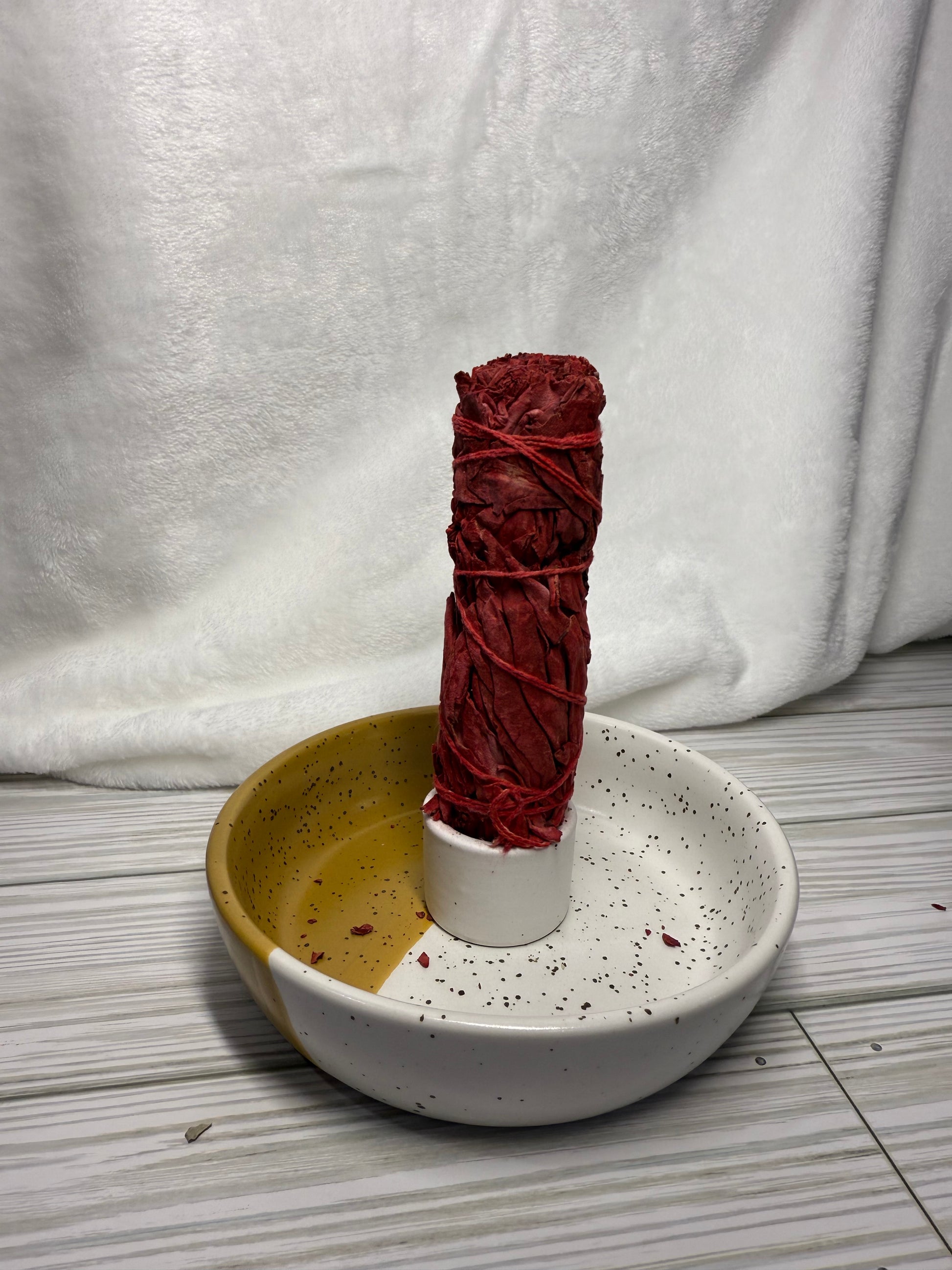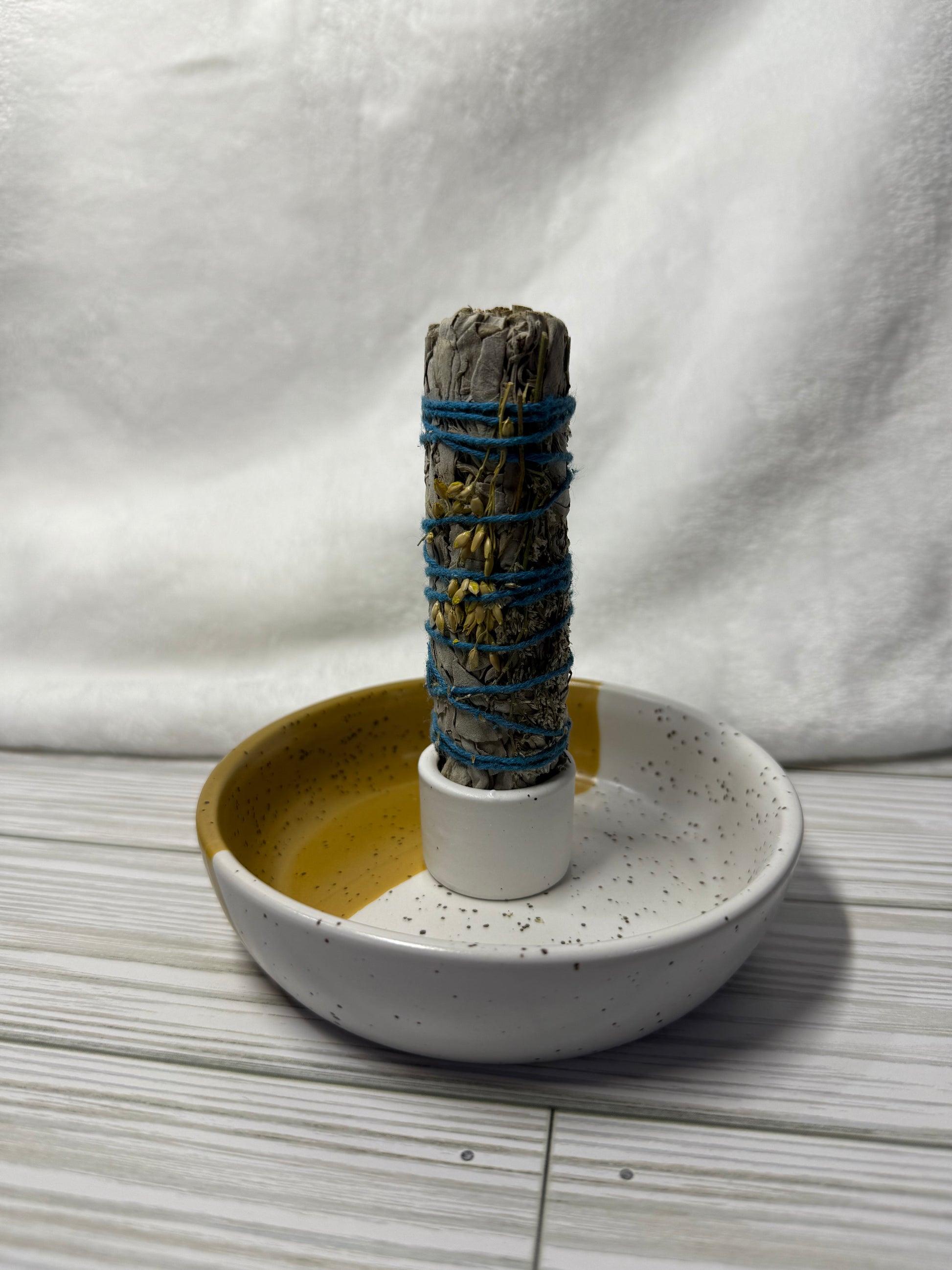 This ceramic smudge stick holder is the perfect companion for your cleansing rituals. With its sleek design, it elegantly holds your smudge stick in place, while preventing any ash or debris from falling to the floor. Keep your space clean and sacred with this must-have tool.
