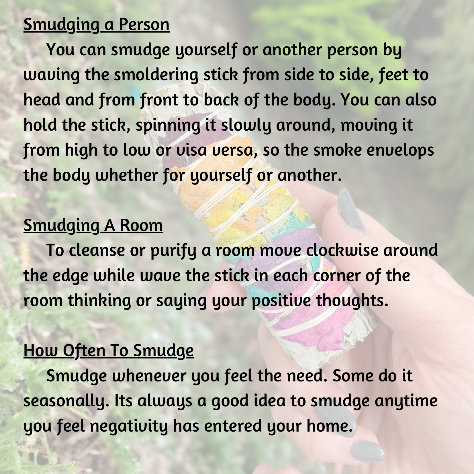 Clear your space and uplift your spirits with our Smudge Sticks. Choose from White Sage, Blue Sage, Yerba Santa, Juniper, Cedar, Rosemary, Palo Santo, Blue Flower Sage, Yellow Flower Sage and Rose Petal Flower Sage. A blend of powerful herbs and flowers to promote positive energy and purify your surroundings. (No bad vibes allowed!)