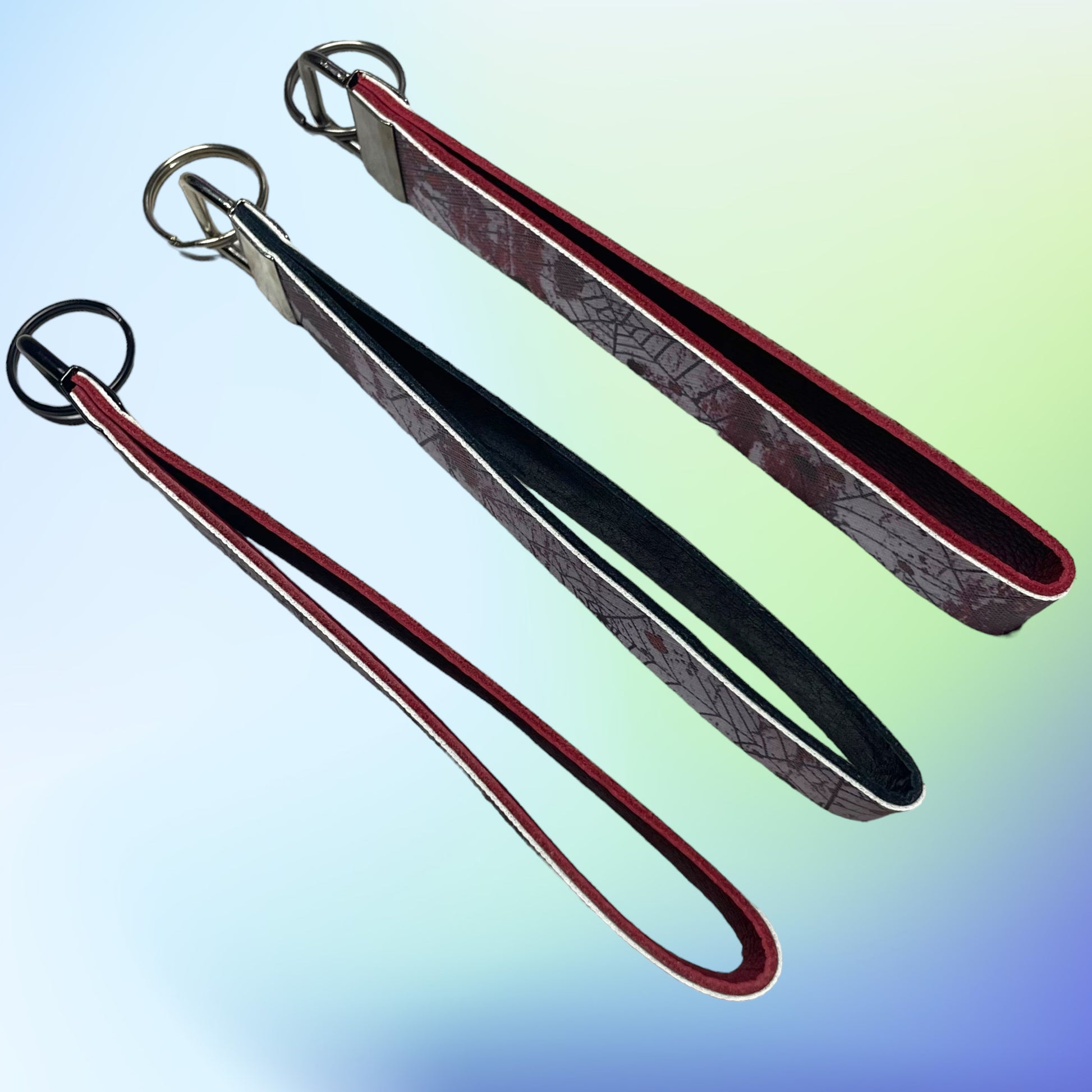 This Spooky Season Bloody Spiderweb Keychain Wristlet is the perfect accessory for Halloween season! It's crafted with a 5.5" long faux leather outer layer in a bloody spiderweb print and a genuine leather interior in your choice of either red or black. Add a touch of horror to any look with this stylish keychain!
