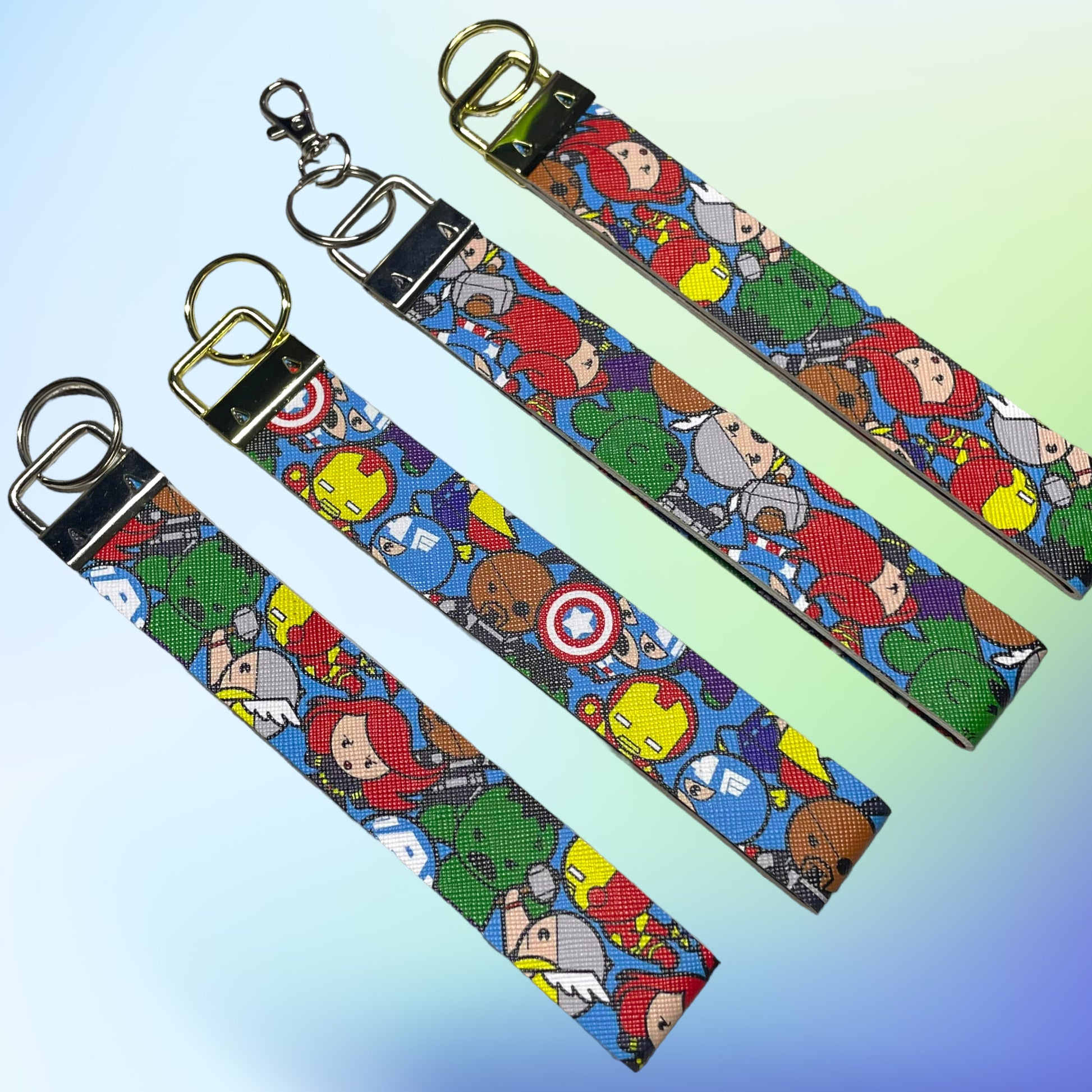 Love superheroes? Show your passion with this cool wristlet! Made from cartoon superhero print faux leather, your keys will be stylish and safe with this mini Marvel-ous accessory. Be the envy of your friends and save the day with this awesome watchful protector!