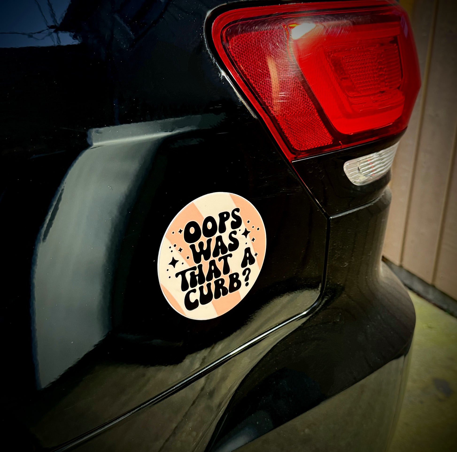 Say goodbye to unsightly dings with our Oops Was That A Curb Car Magnet! At 4.5 inches, this magnetic circle is perfect for any car.