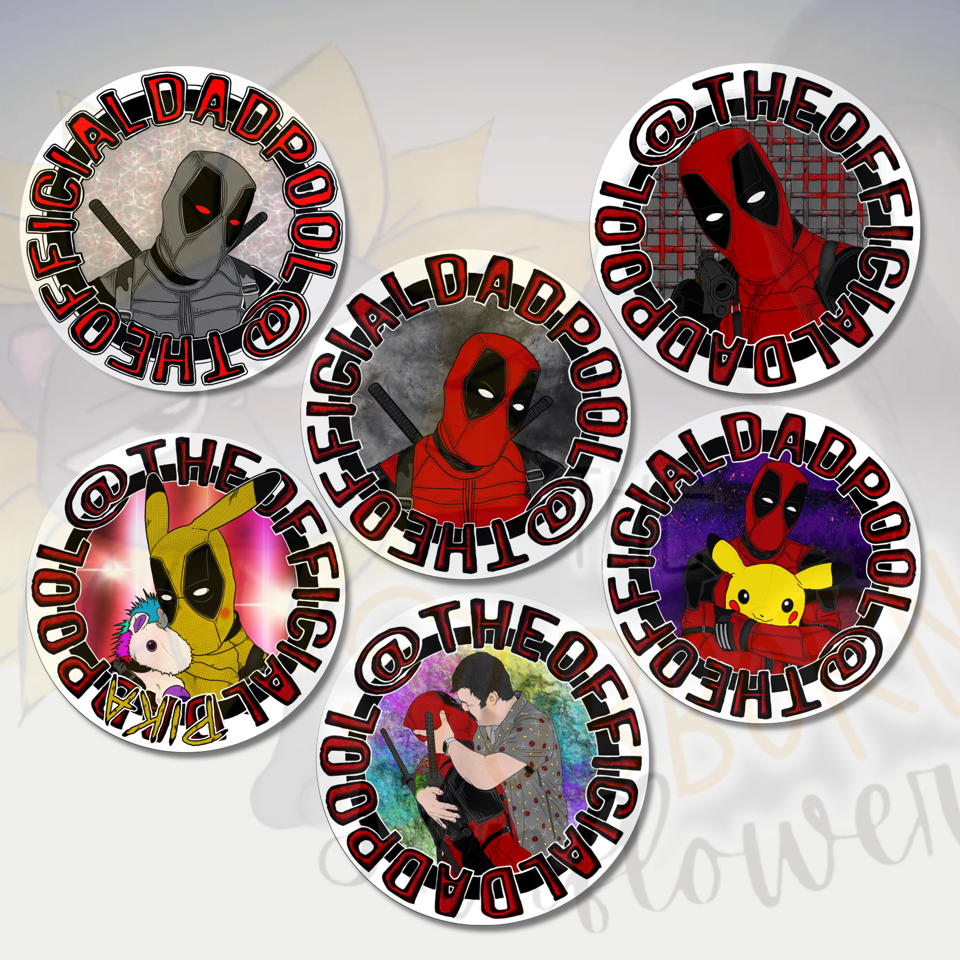 Spice up any surface with a Dadpool Logo Sticker! Choose from the OG Logo, PikaPool, Deadshots, Pika Hug, X-Farce, Sugar Bear’s Kiss, Marvel Jesus, Hand Hearts, and Pride. These 3” round stickers are water resistant, ensuring long-lasting fun. Perfect for any fan of Dadpool's quirky humor!