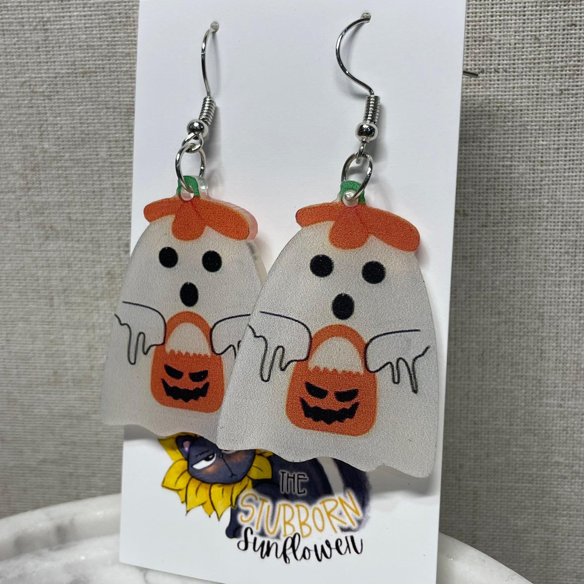 Get ready to spook and charm with our Trick or Treat Ghost Earrings. These dangly earrings will add a playful touch to any Halloween outfit. The only trick is trying not to smile when you wear them! (Though we won't judge if you do!)