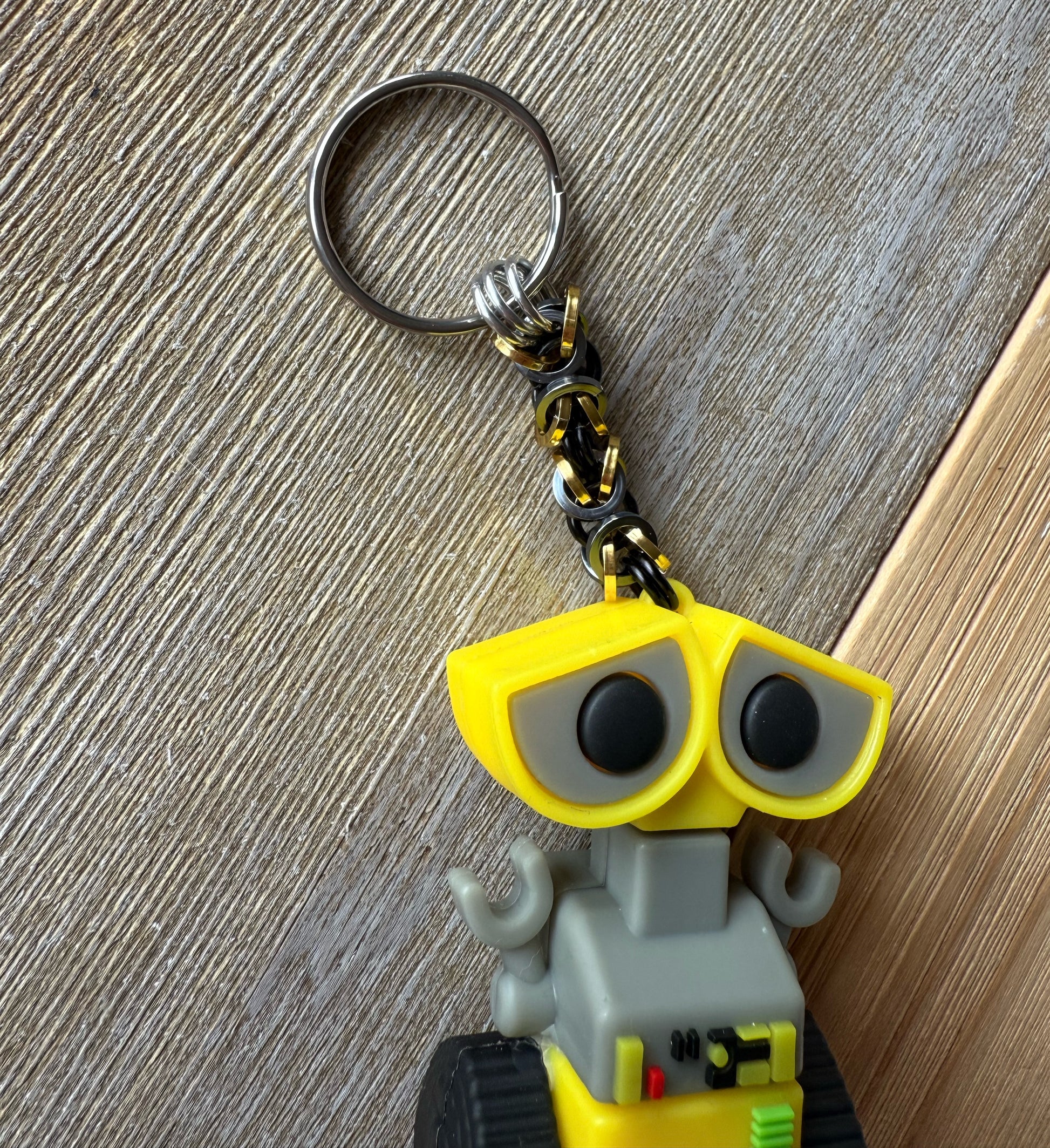 Carry a piece of Wall-e with you wherever you go with this handcrafted chainmaille keychain by a local artist. Perfect for adding a unique touch to your keys, this keychain is both durable and playful.