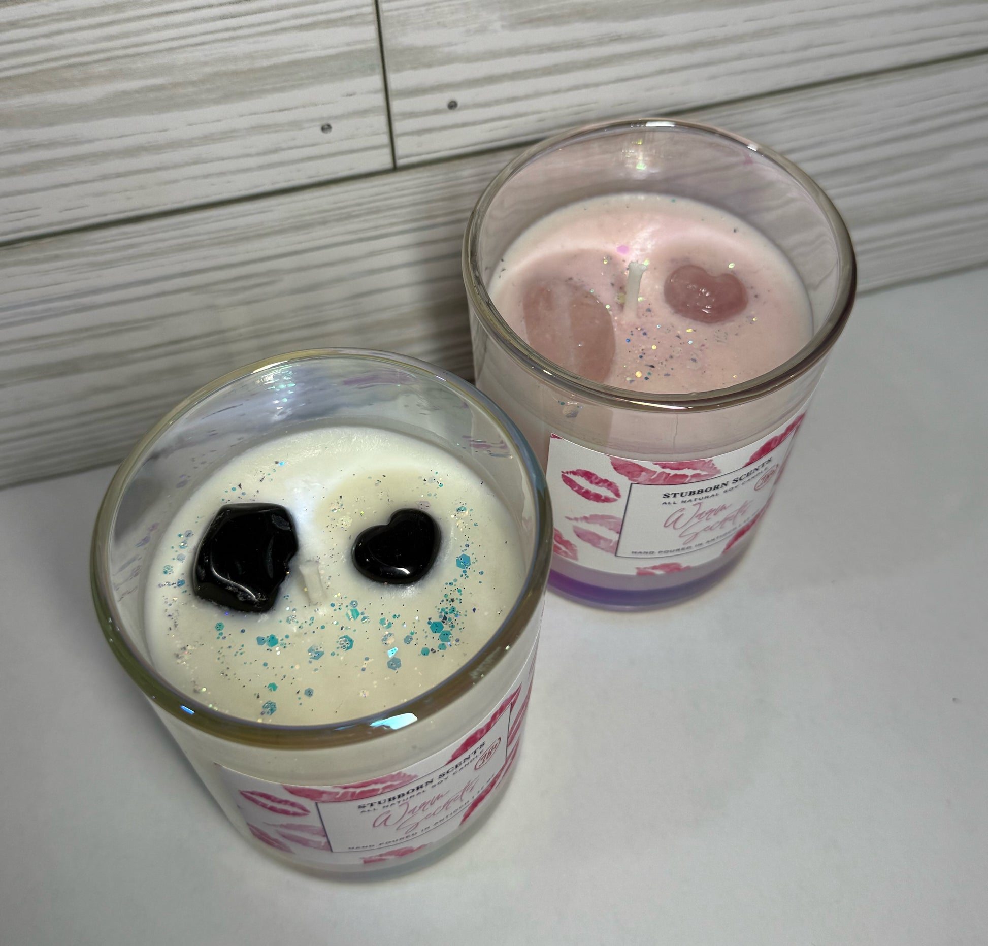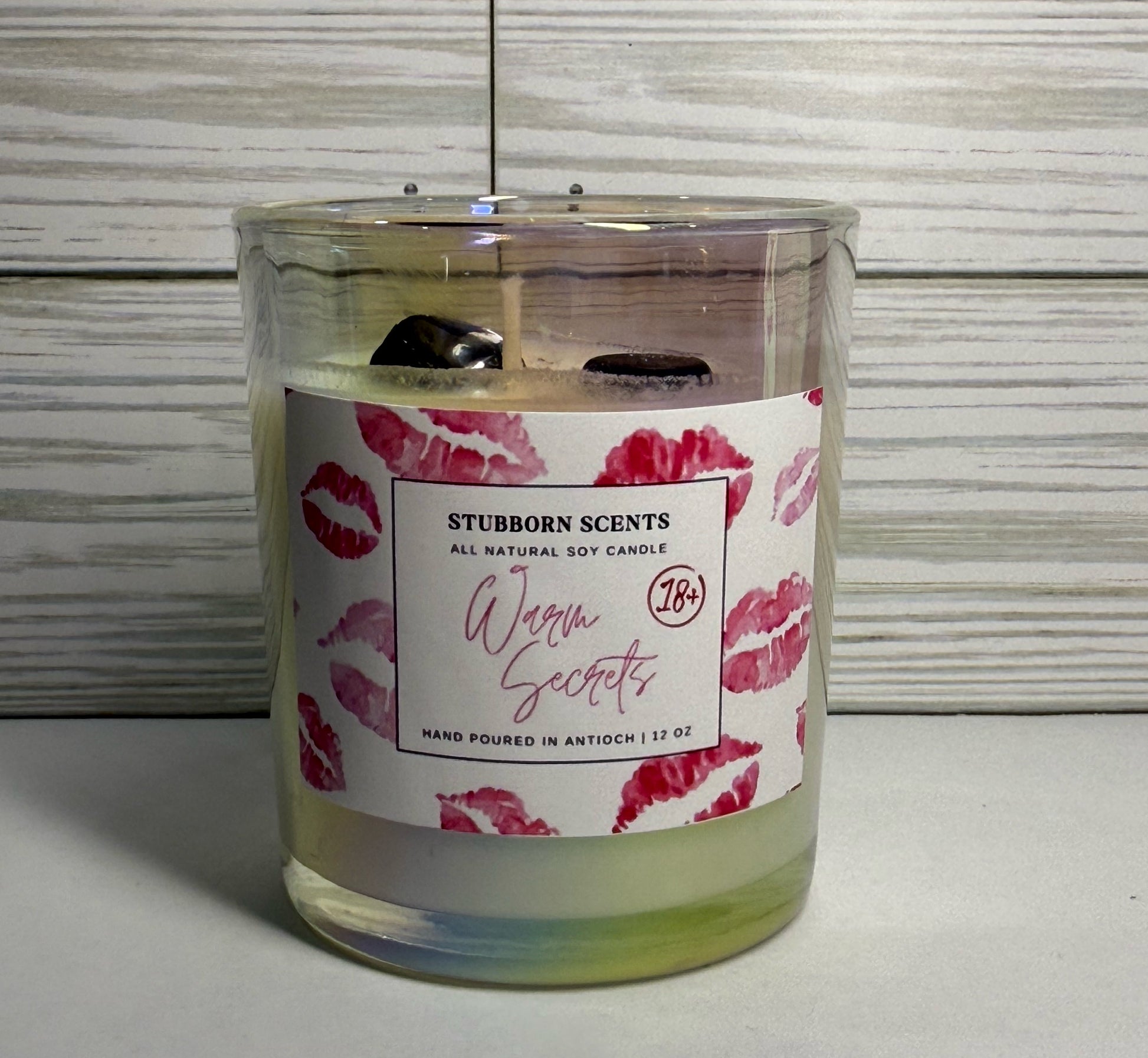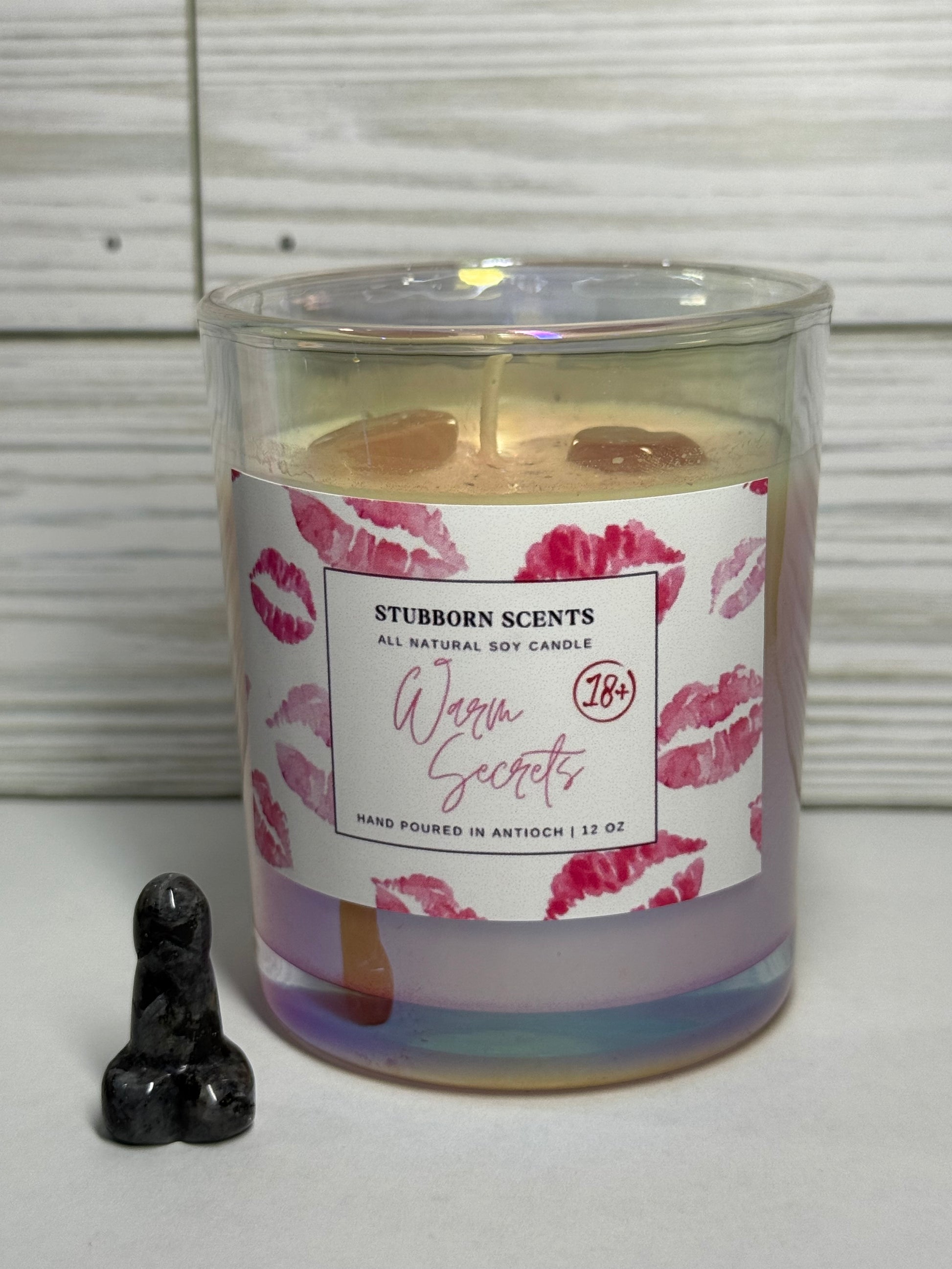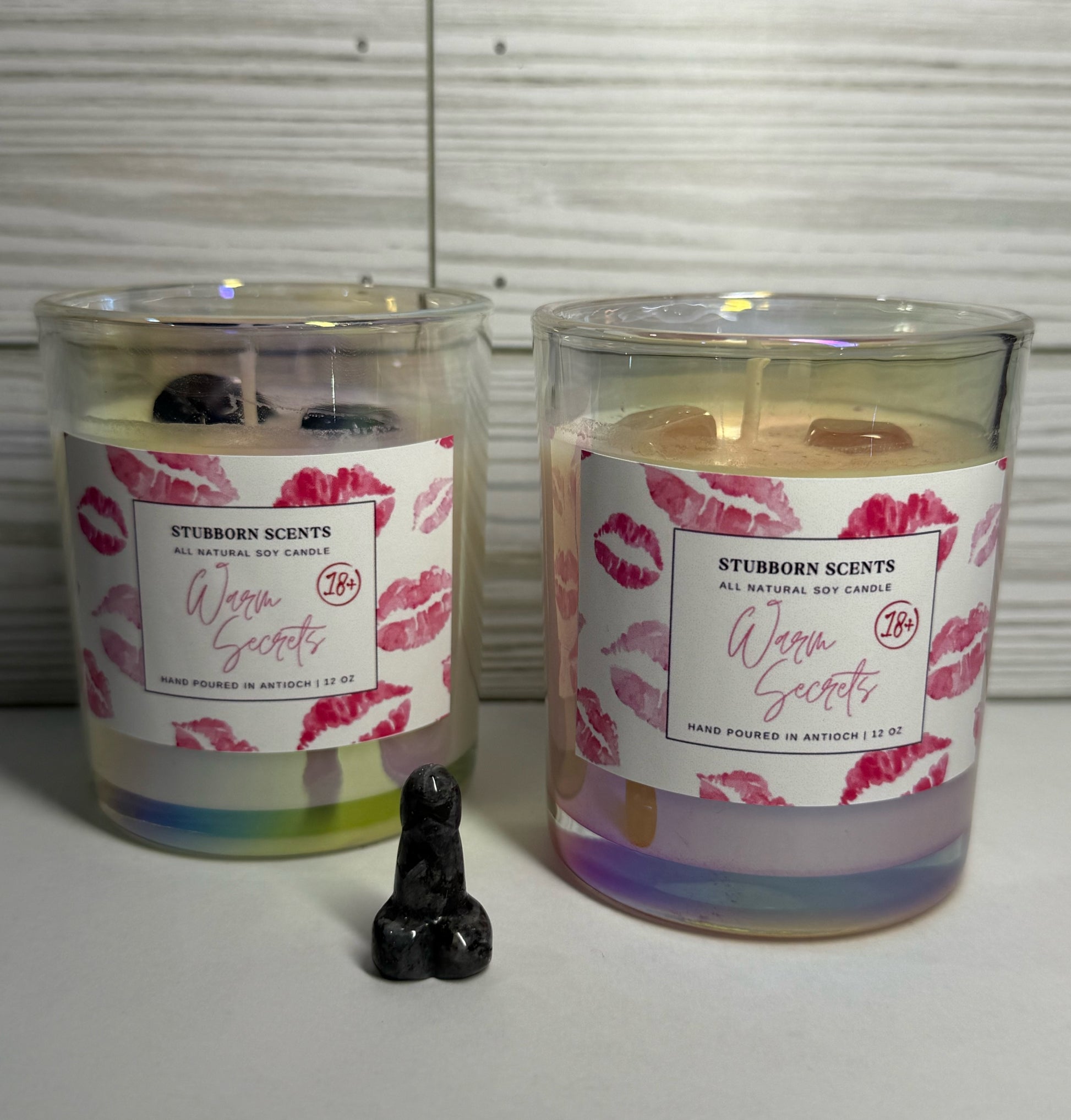Uncover the hidden surprise with our Warm Secrets Crystal Candle! Indulge in the warm vanilla sugar scent while admiring the two crystals, one of which cleverly transforms from heart-shaped to a crystal penis upon burning. Perfect for a playful and unexpected gift for those 18 and older.